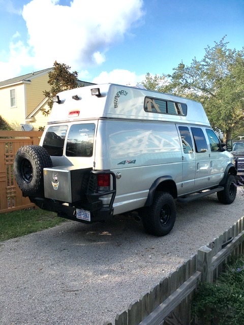 “Overall, the van is in very good condition. The engine is strong, and the 4×4 system works flawlessly. New (2022) serpentine belt, spark plugs, fuel pump, and ECU unit all done by Ford dealer. The paint is shiny and bright, but if you look hard, you can find a couple of paint chips that are very small. There are a couple of light scratches, maybe 1to 3-inches long on the back doors behind the swing-out tire and storage box.”