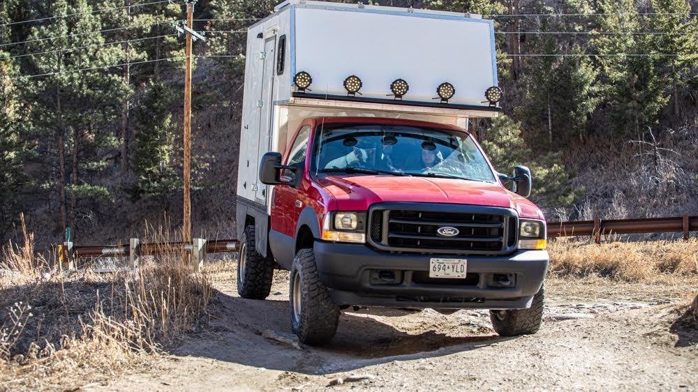 First, the platform. What we have here is your typical run-of-the-mill 2004 Ford F-250 4×4 with the well-proven 6.8 V10 engine. What’s fantastic about this is that you can find parts and mechanics pretty much anywhere in North America, usually at a very reasonable rate. Need a starter in Dawson Creek? There is probably one at the local grocery store. Need a mechanic in Elko? They swap transmissions before lunchtime. Just look at this guy, swapping it on the floor with no lift, only his own hands.