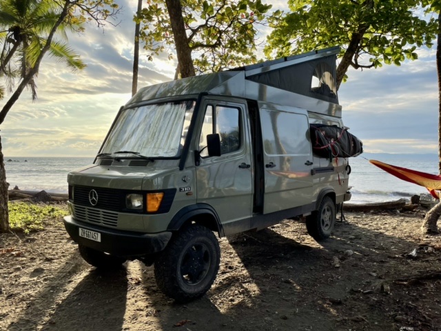“We’re selling our custom expedition vehicle, perfect for off-grid camping and exploring remote places. It will be for sale in August 2022. Currently in Panama, the van could be shipped to the US or elsewhere, or driven anywhere between Panama and Mexico. The car is still in perfect condition. It used to be a firefighter truck in the Austrian alps with perfect maintenance. We are the first owners after the fire brigade and bought it at 7,000 kilometers looking like new.”