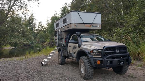 Thinking about escaping to warmer weather this winter? If Baja is on your agenda, then perhaps the MULE Expedition Outfitters Baja Runner, currently for sale, might be of interest. This unique Ram 2500 Tradesman chassis is outfitted with a Norweld flatbed tray and Four Wheel Campers Hawk pop-up as well as a slew of AEV and other high-end components. The MULE team wanted to complete a full-sized camper build and after seeing similar setups, they decided to take the concept of the flatbed truck-camper a little bit further. All design and fabrication work was completed in-house by MULE and the results are stunning.