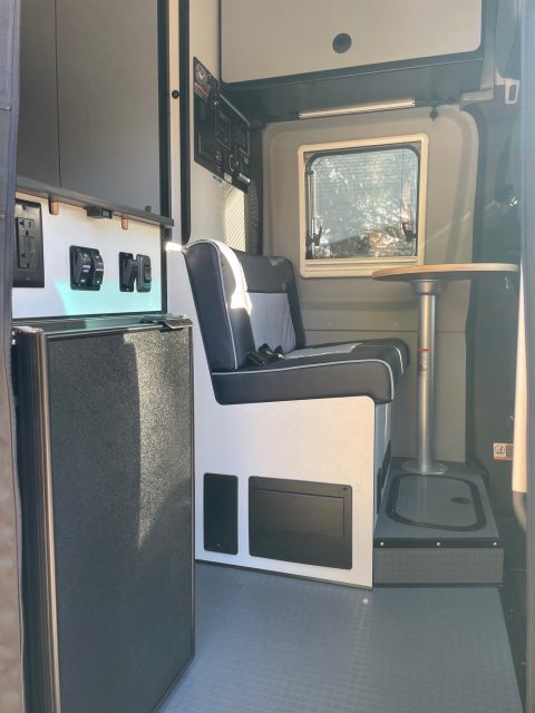 This Winnebago Revel Sprinter 4WD was assembled using premium components and is designed to be a turnkey camping experience. Subsequently, it integrates two 125-amp-hour lithium batteries with a dedicated second alternator to charge the system, solar panels, hydronic heating, rooftop air conditioning, and a Xantrax 2,000-watt inverter. Interior comforts include a power lift bed, shower, toilet, water heater, compressor fridge, black-out blinds, and induction stove. The cab showcases an MBUX touchscreen multimedia infotainment system, Distronic Plus adaptive cruise control, active lane-keeping/blind spot/traffic sign assist, keyless entry, and more. Check out winnebago.com for a detailed overview of the 2022 Revel.