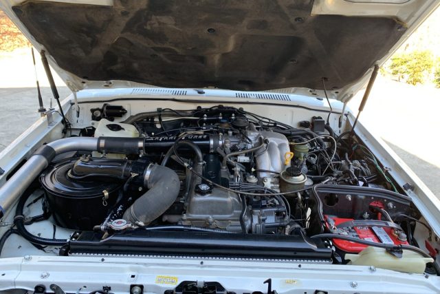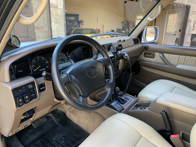 “This 1997 Toyota Land Cruiser is finished in white over beige leather upholstery and is powered by a turbocharged 4.5-liter inline-six paired with a 4-speed automatic transmission, a dual-range transfer case, and three locking differentials. Service performed under current ownership includes rebuilding the transmission and overhauling the braking system.”