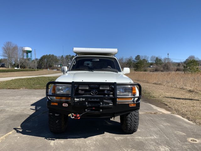 - ARB front bumper, Kaymar rear bumper, and Warn winch