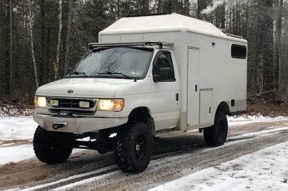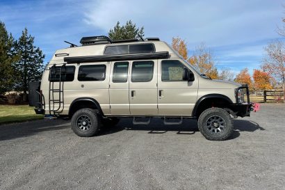 Rooftop tents and pop-up campers are classic overland options with a long list of pros. They are, however, challenging to live out of in inclement weather. This is where hard-sided vehicles, such as vans, really shine. Wind, rain, mosquitos—no problem. This 2005 Ford E350 Quigley 4×4 offers a comfortable retreat when Mother Nature is in…
