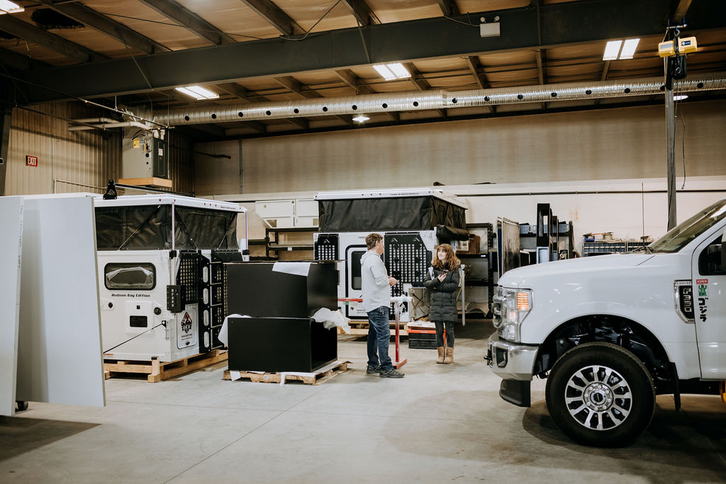 Pre-assembled aluminum furniture (the construction of which is outsourced due to limited warehouse square footage) receives an in-house powder coat and is placed into the camper body before finalizing the plumbing and wiring systems. Each unit is tested extensively, Arnold explains, ensuring proper function of the electrical, plumbing, and propane units. Finally, the camper moves to shipping, where it undergoes a final quality control test before being loaded onto a transport truck.