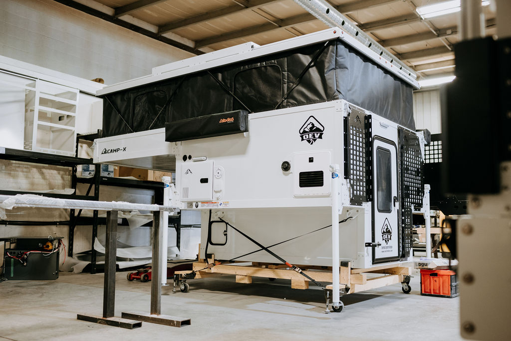 Before forming OEV, Mark and Arnold built service vehicles for different utility companies, including large walk-in and rescue bodies, truck decks, and flatbeds on F-550s and Dodge 5500 trucks serving the oil and gas industry in Alberta. “Those customers always wanted everything lighter and stronger,” Arnold explains, “but composites were very expensive in the early 2000s, and it wasn’t cost-effective to build something out of it at that time. While building these service trucks for different utility companies, we realized they were [essentially] campers.” As Alberta’s oil and gas boom fizzled out, Baker and Cymbaluk set their sights on the overland recreational vehicle industry, incorporating what they learned into the design of their pop-up truck campers.