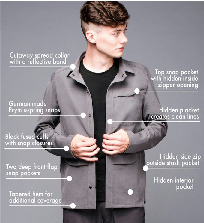 Most travel apparel today is either unstylish, gimmicky and/or made unethically with cheap materials in China. We set out to make a travel jacket that is both attractive and functional for adventure travelers. Designed and made in the USA, this highly versatile jacket for travel, outdoors, and everyday wear, that allows you to pack less and see more. A modern take on the classic US Military M65 field jacket silhouette, it will become your go-to jacket for any adventure. Based on our 20 years of experience sourcing materials and designing comfortable durable apparel, we chose woven merino wool from New Zealand as it is the perfect travel fabric. Designed for performance and feature rich. It sports clean, modern design, with technical fabric and five strategically placed pockets that work for travel and everyday carry.