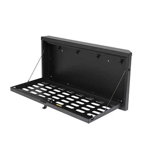 Combining versatility with security, Tuffy’s locking tailgate MOLLE box helps you to organize and store valuable equipment in the tailgate of your Wrangler JL or JLU. It is constructed from powder-coated 1/8-inch steel and features a 10-tumbler, double-bitted, weather-sealed lock. It can support up to 40 pounds (total) between gear fastened to the integrated MOLLE panel on the lid and whatever you choose to secure inside. Mounting hardware is included.