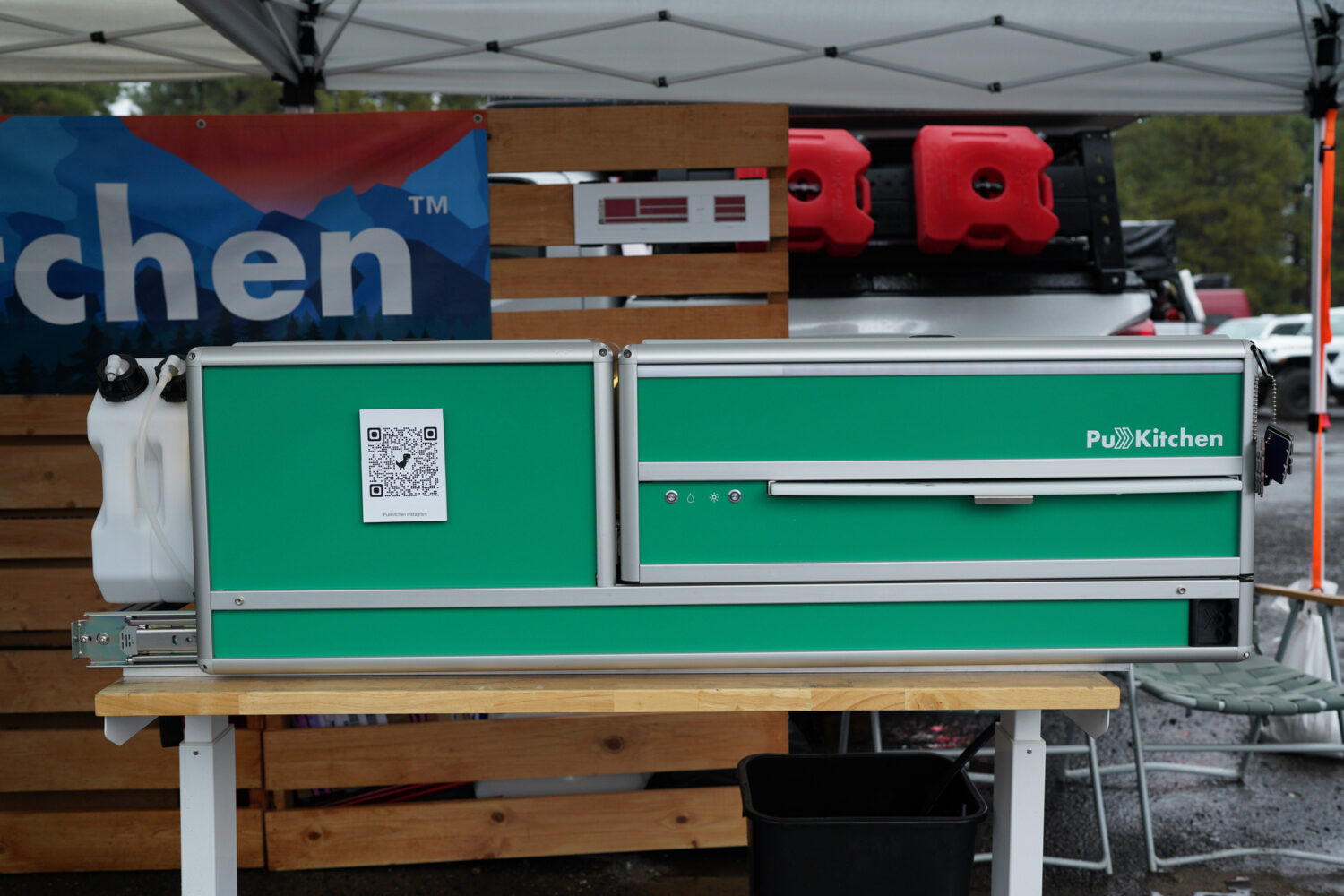 The Pullkitchen is an all-in-one solution that can be installed in your truck, van, SUV, or trailer. It has everything that you need to prepare delicious meals in the backcountry including prep surfaces, a two-burner stove, sink, and food storage. The Quickmount option allows travelers to easily remove the Pullkitchen from their vehicle in as little as three minutes and the whole setup weighs in at 200 pounds. The minimum cargo space required to mount the Pullkitchen is 60 (L) x 21.5 (W) x 17.75 (H) inches.