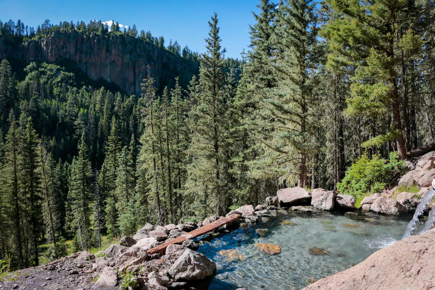 The next stop is Santa Fe National Forest, a 1.6-million-acre region that became a team favorite on the trip. It’s one of those pleasant places that surprises you with its tranquility, and certainly defies the stereotype of its surrounding countryside. Cool streams filled with fish run through shaded valleys into small lakes, and wildflowers bloom in bright colors along the banks. There are hiking trails everywhere, and for those willing to look, secluded hot springs can be found along the cliff walls. The roads here are not technical or challenging, but their epic views and cliffside dropoffs are exciting all the same.
