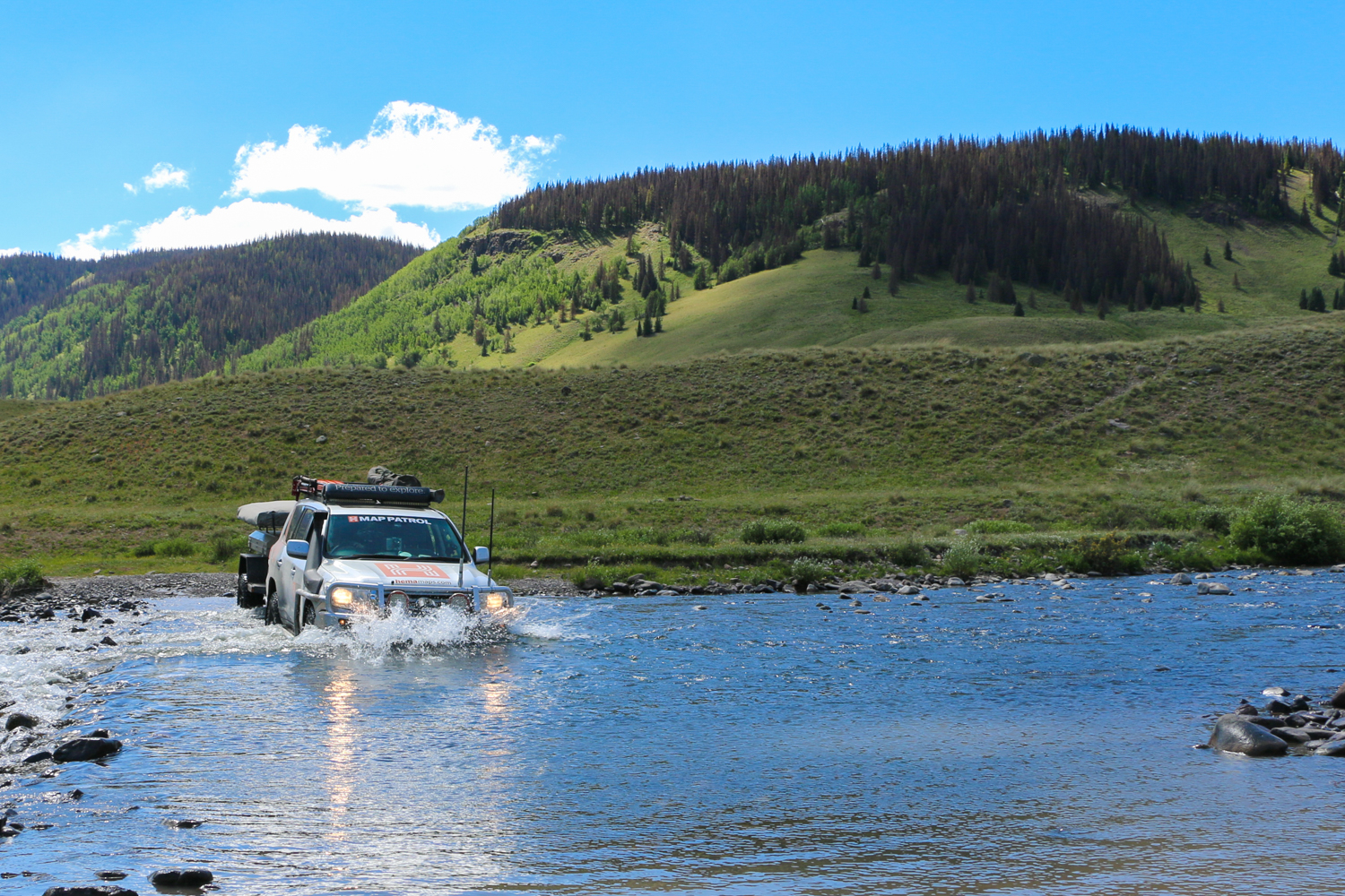 The Continental Divide route is largely comprised of graded gravel roads with mild washouts and stream crossings. Most of it can be done in an all-wheel-drive vehicle, howeve,r there are a few sections of steep shelf road, loose rock, and deep water that require more care. We would rate the entire journey as easy to moderate.