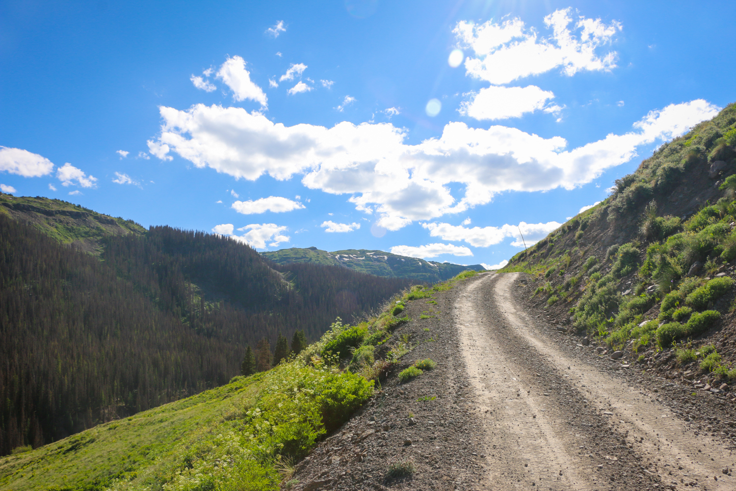 The descent down the opposite slope is no less stunning, and curves its way through meadows of tall grass intertwined with the white trunks of aspen. There are many great campsites along this stretch of road, and though they can be rocky, there are few better places to witness a sunrise.