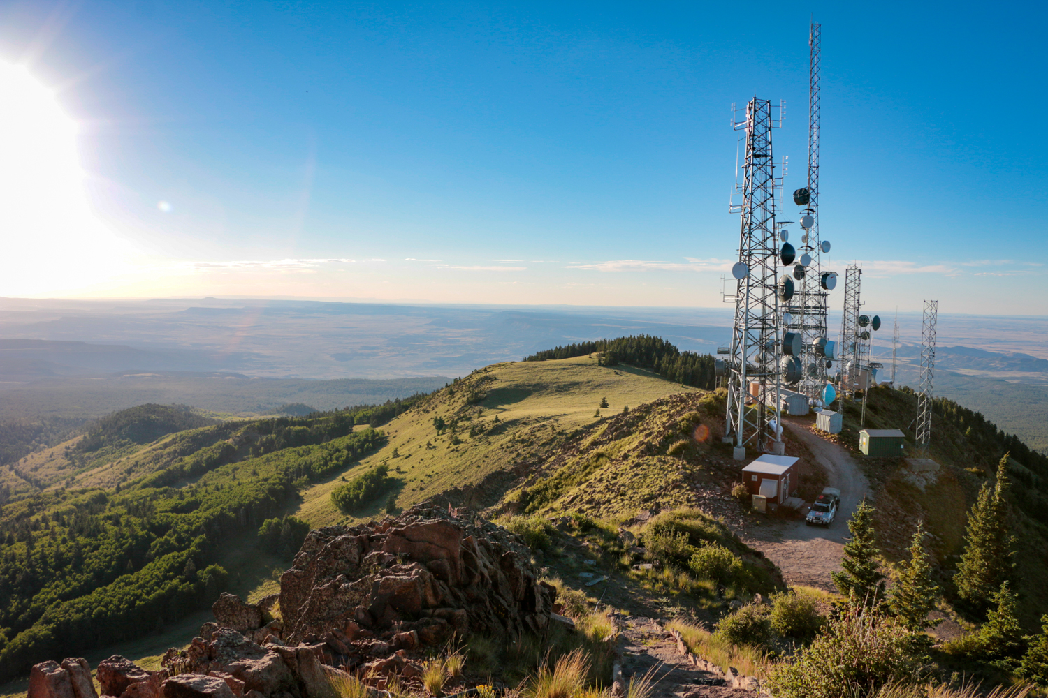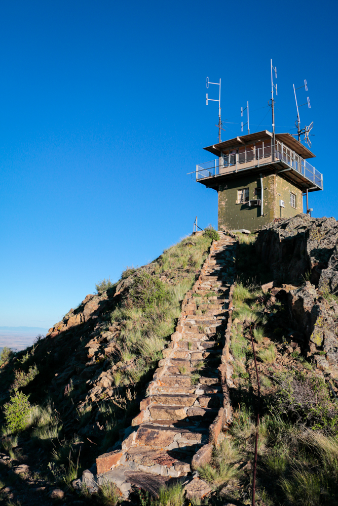 The first stretches of the route include iconic desert landscapes, distant horizons, and dusty gravel roads, but before long the dark colors of ancient lava beds begin to surround the road, marking a fundamental shift in terrain. Here the land is richer, and larger vegetation grows more prolifically. The hills turn from a faded brown to pale green, and then to deep emerald as you make the steep ascent toward La Mosca Lookout. This small outpost is precariously positioned at the tip of a mountain peak, and can only be accessed by a narrow rock staircase at the end of a shelf road. From the summit, an expansive view of thick forests and winding tracks can be seen stretching out far below you, and the reds of the distant desert paint the horizon. We were fortunate enough to have the view to ourselves, and it shattered every preconceived notion of New Mexico we had.
