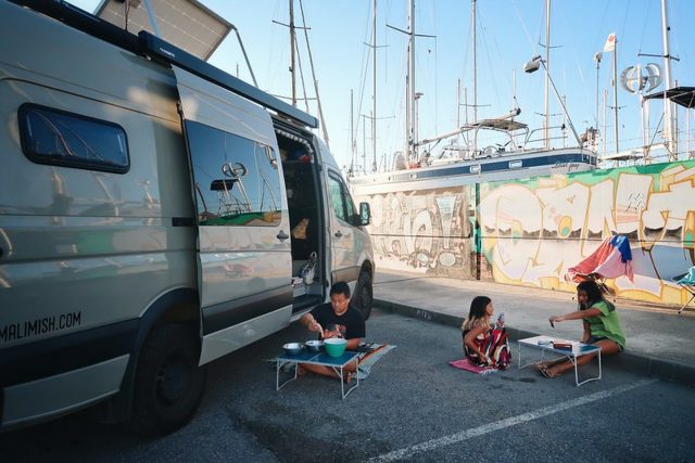 When desperate for showers or laundry (or WiFi), Dan and Marlene of MaliMish use AirBnB. “Booking a small place for a night can be cheaper than paying for showers at a campground or laundry at the laundromat. Use the place for a few hours and then head back to your camper clean and refreshed.”