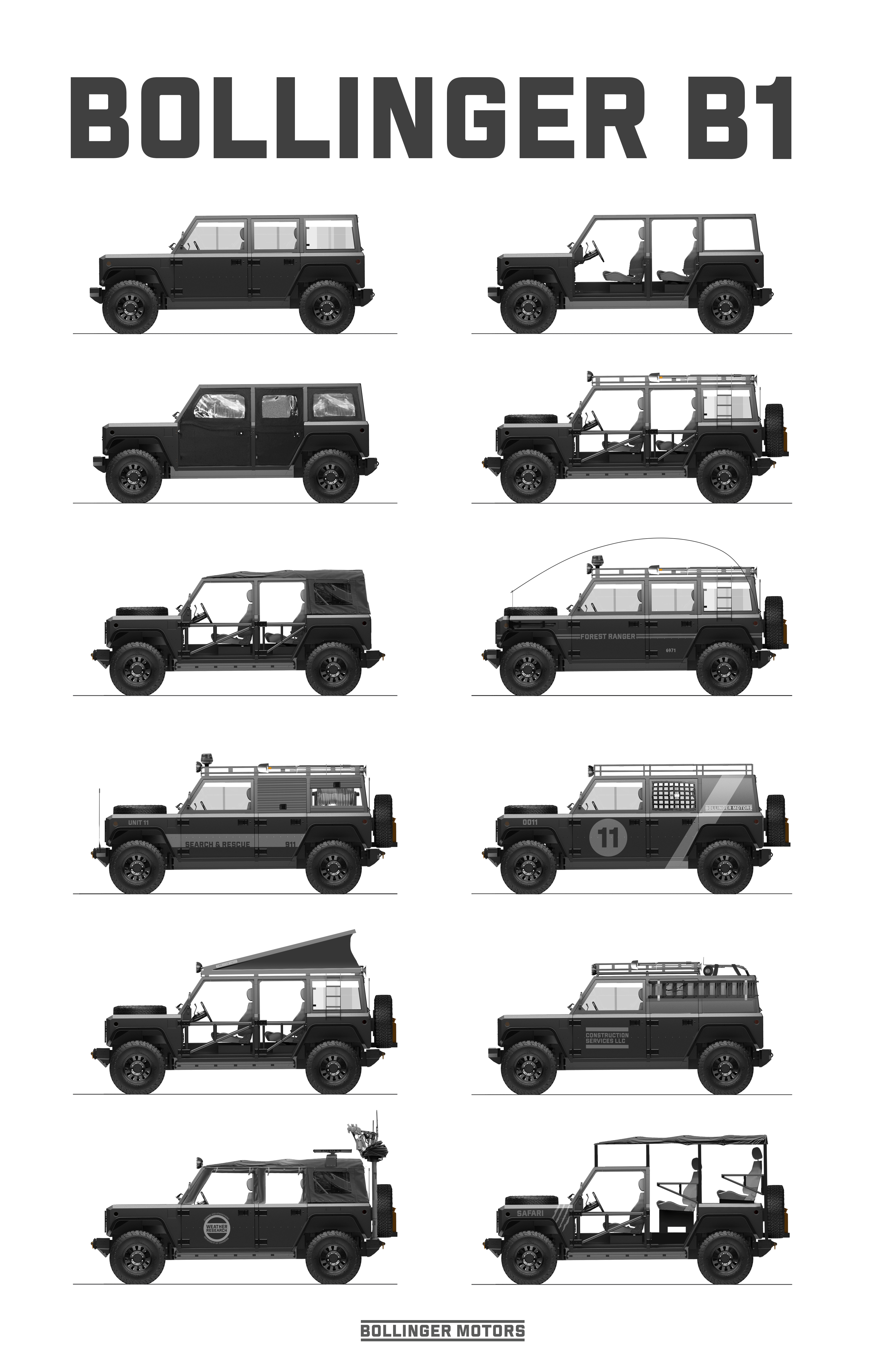 The specifications also speak to a real opportunity for hauling necessary equipment with a 5,000 pound payload, which is more that the combined payload of FOUR Toyota Tacomas. Storage is massive at 113 cubic feet, plus an additional 14 cubic feet under the bonnet. On the trail, there is 668 ft-lb of torque available immediately as the tires start to rotate, and 15 inches of ground clearance. That ground clearance can be increased to 20 inches with the available air suspension. This vehicle is clearly designed by enthusiasts. Bollingermotors.com