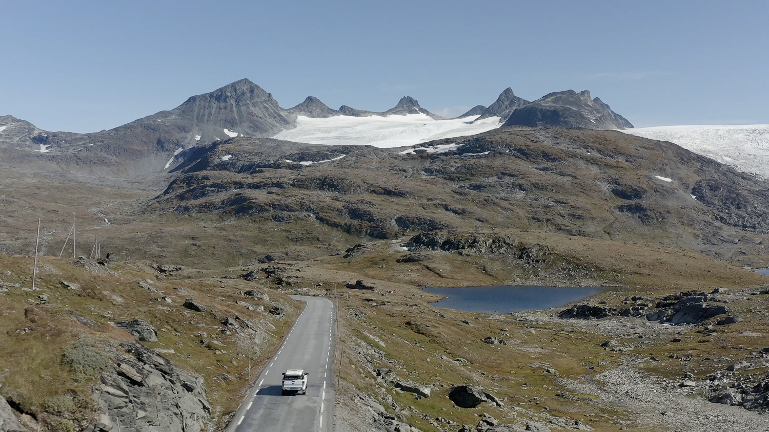 Aurlandsfjellet scenic road. It’s a road full of contrasts, connecting the shore with high mountains and snow patches that are visible all year round.