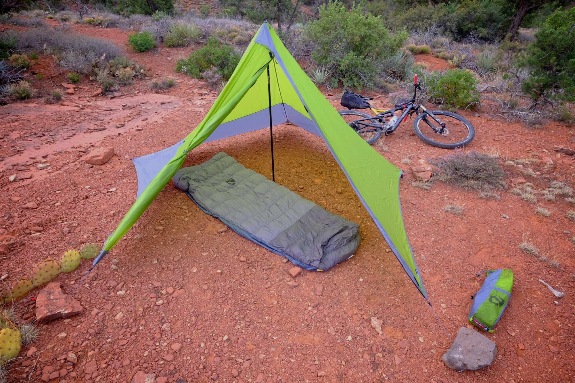 Make sure you carefully inspect the ground and remove anything sharp or lumpy like sticks, rocks, pinecones, or cactus needles which could puncture the tent floor or worse, an inflatable sleeping pad. In the desert, be aware that sweeping the ground with your feet or anything else can disturb cactus needles laying on the ground forcing them to stand at attention where they can do the most poke damage. For that reason, sometimes I inspect the ground but try not to disturb it too much.