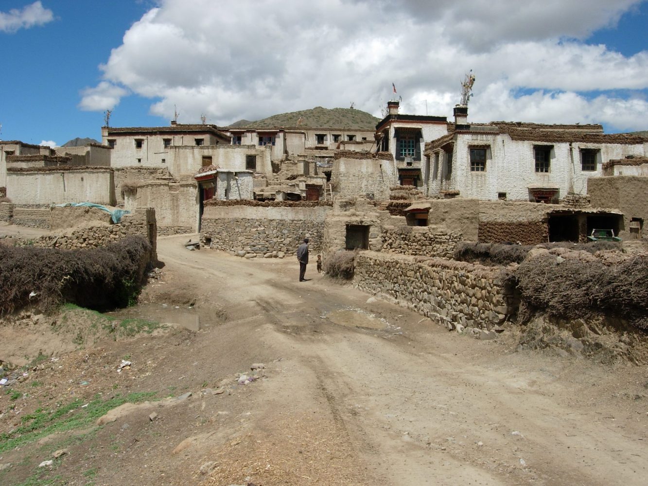 The drive into Gyantse was mostly on dirt. There wasn’t much traffic to speak of, which made it easy to pass the slow local delivery vans and farm tractors. Our Land Cruiser had no spare tire, the existing tires weren’t too reassuring, and our shocks felt non-existent. We drove gingerly, thinking the vehicle could fail at any time. It was a dusty, bumpy ride, but we still managed to converse non-stop for the entire trip. We occasionally stopped at small villages to stretch our legs and fuel up and developed a knack for finding excellent roadside restaurants serving Tibetan momos (dumplings) and warm tea. Little kids with runny noses and dirt-smudged faces found us no matter where we stopped. Some were happy enough to stare at us, while others pleaded for candy, money, or trinkets. Elena had a heart of gold and had prepped for these moments, happily handing out pens and cool notepads to the kids.