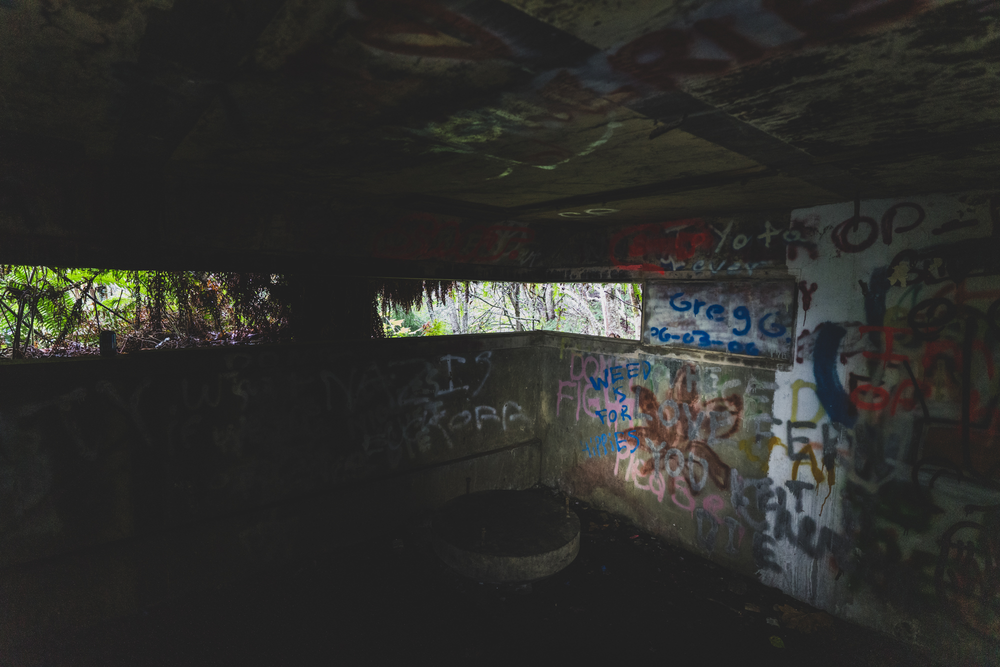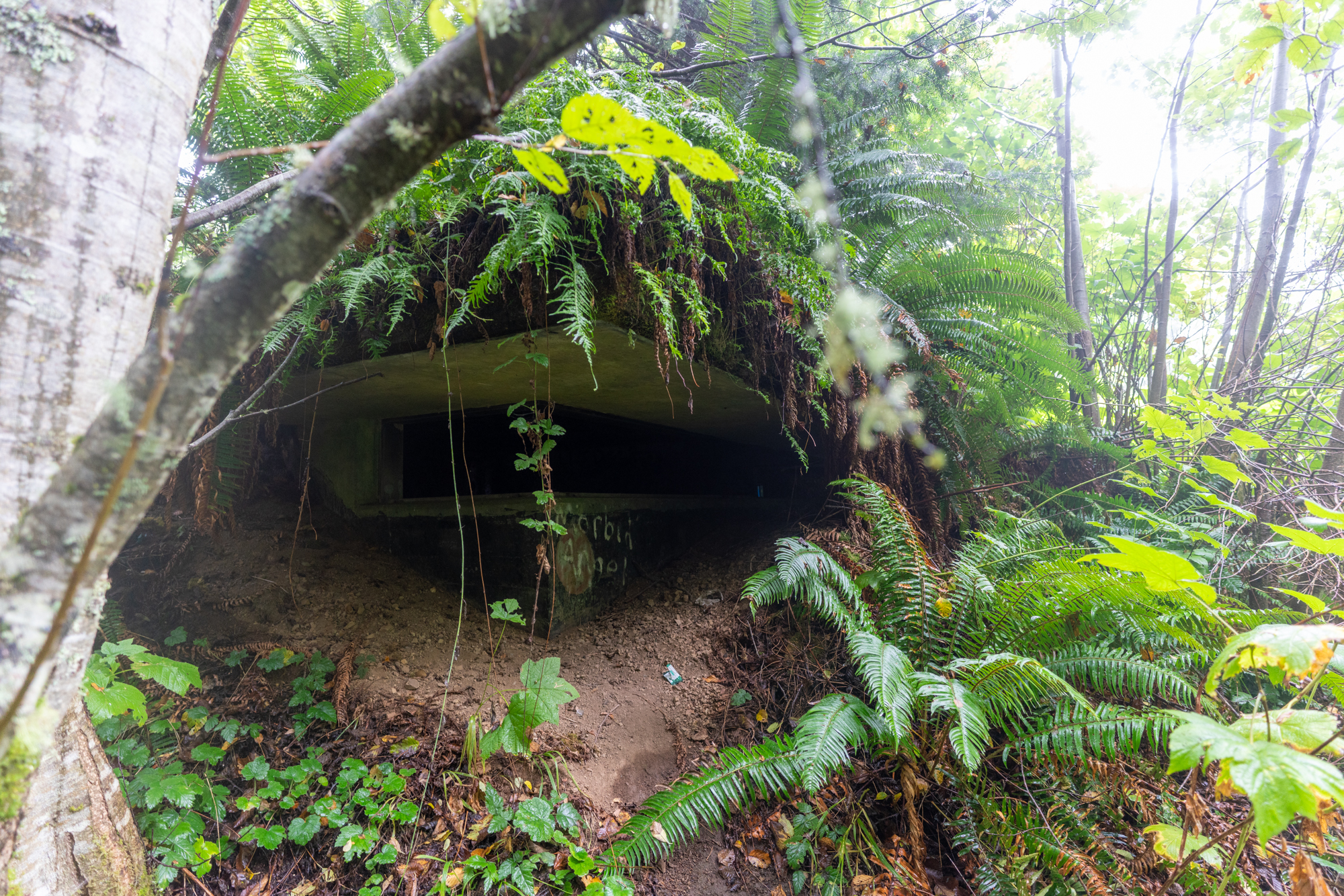 I walked closer, my eyes adjusting to the dark recesses, words taking shape from years of graffiti on the walls. I suspected it was empty—hoped it was empty. And being the adventurous sort, I continued inside and found an entire facility under the ground. Several rooms and halls were still in near perfect condition, and my imagination meandered toward the TV show “Lost” and the Dharma Initiative. As I moved into the larger room, the structure’s intention became clear—a narrow open portal facing the sea. This was a gunnery bunker, which I assumed was made during WWII to defend this remote coastline and the waterway leading to Seattle. Research after the fact has revealed some incredible details on this bunker and other installations like it. I was so excited by my discovery, I completely forgot about the hike and spent nearly an hour photographing and otherwise documenting the structure. It also served as a reminder to get away from the vehicle and hike around—you never know what you might find.