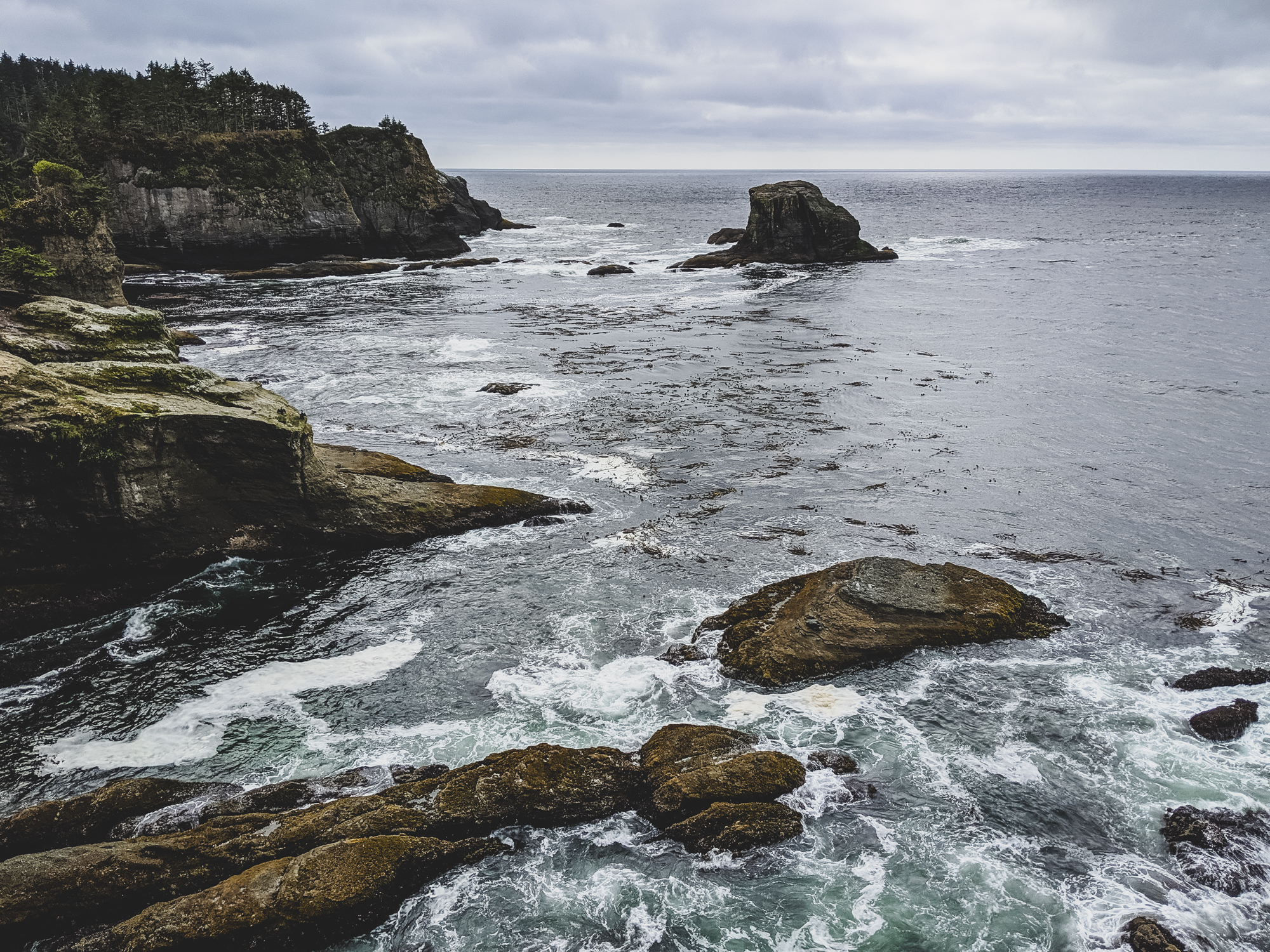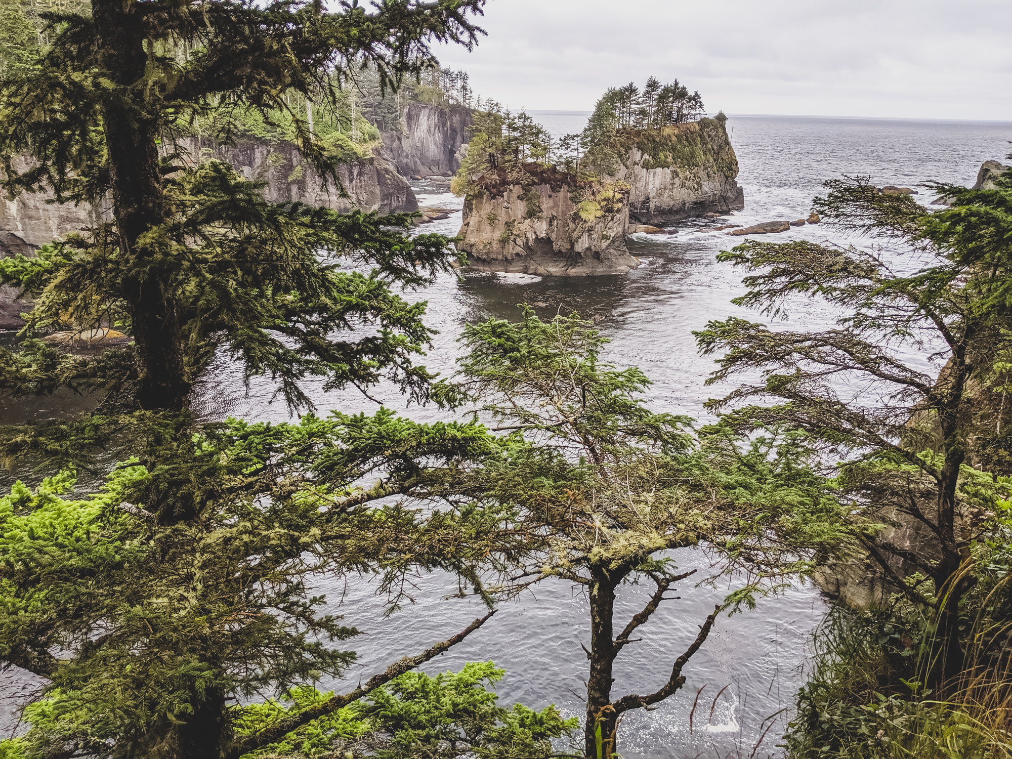 Continuing to the west, I took the Cape Loop Road toward Waatch and Cape Flattery. The route is stunning with massive stands of Sitka spruce and thick, lush groundcover. There is a small parking area near the cape that allows access to a hiking trail a little under a mile long. I took my time enjoying the walk, which includes long sections of raised wood planking and several viewing platforms. This provides access to the northwesternmost point of the 48 states and an expansive view into the Pacific Ocean.