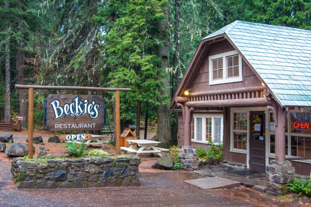 From there you’ll travel toward the base of Mount Hood, where the trail dives deep into the woods and begins to narrow with vegetation. The longer you drive, the thicker it gets, and you’ll soon feel like every shrub and tree in Oregon has converged upon the road to block your path. You will likely find yourself out of the vehicle clearing branches, and may even need to move a fallen tree. Of course, this only makes the widened paths and peaceful lakeside camps waiting on the other side all the sweeter. There are even a few cabin getaways and “resorts” along the way.