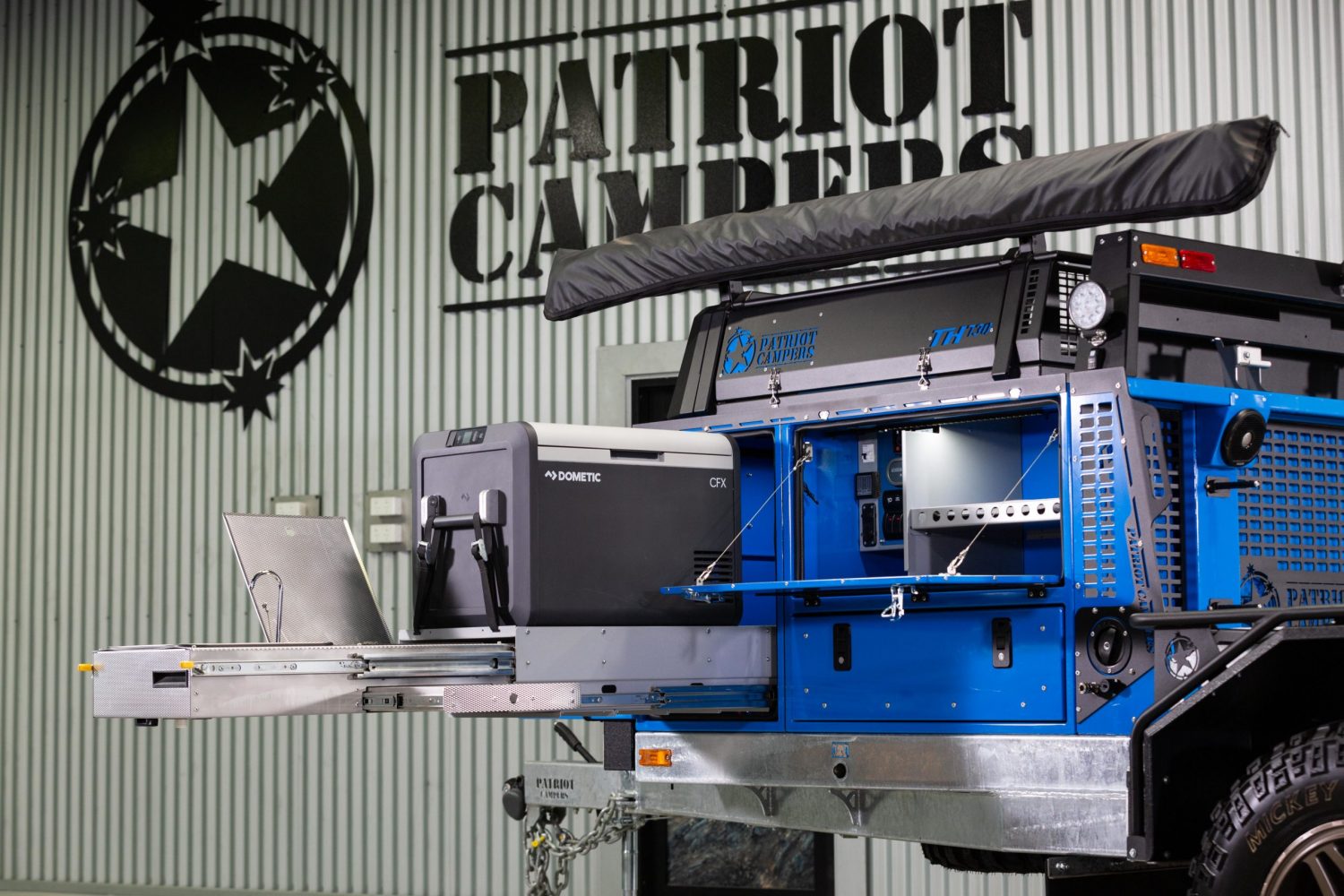 The base camp features a side-accessed slide-out kitchen, complete with a dedicated space for a refrigerator as well as storage space for all of your kitchen essentials. The TH610 can also be optioned with a rooftop tent. Standard features include PCOR 17-inch alloy wheels, MaxTrax mounts, vehicle ramps, DO35 hitch coupling, 12-inch electric brakes, self-leveling airbag suspension, 2×150 amp-hour AGM batteries, RedArc Manager 30, 180-degree awning, LPG hot water heater, and more. Check out the full TH610 specs.