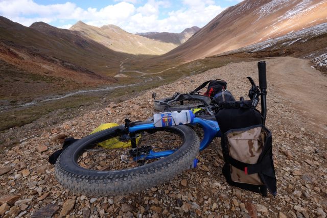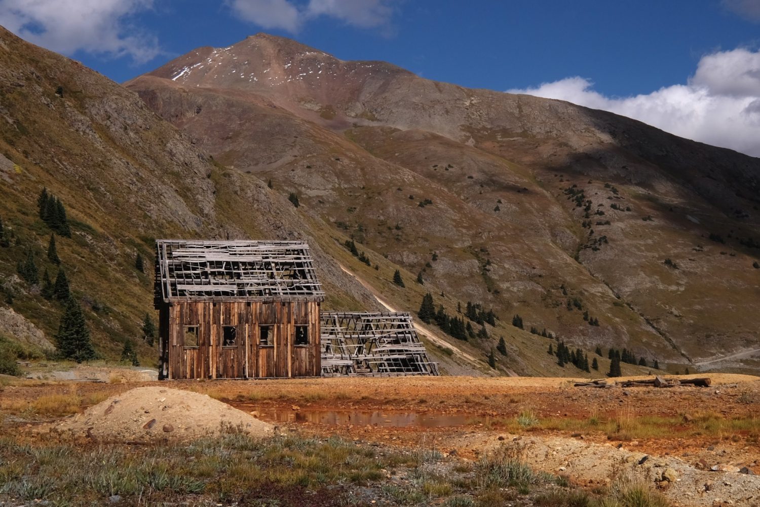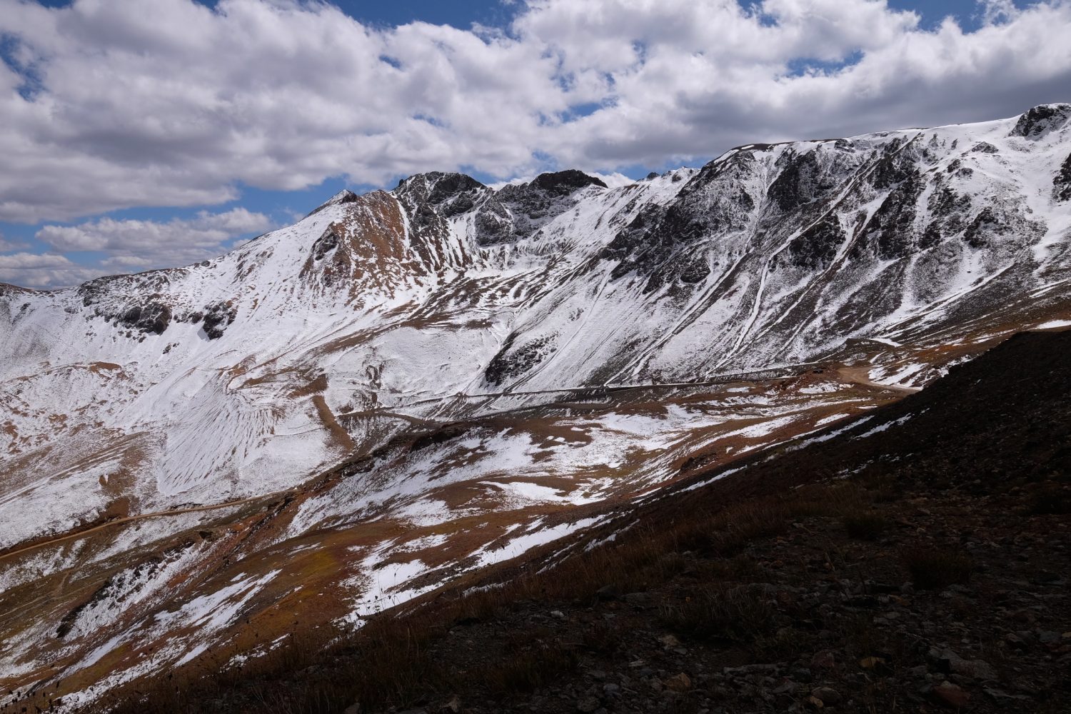 Although only a few miles into my ride, one that took hours of slow grinding and multiple stops to catch my breath, I arrived at a 12,000-foot pass overlooking Eureka Gulch several thousand feet below. I dismounted my bike, ducked behind a boulder to escape the biting wind, and unpacked a small bag of snacks. Gazing down at the warren of roads below, some of them ending at piles of rubble, it was hard to imagine what the valley looked like in the late 1800s when it was the site of the active Sunnyside Mine.