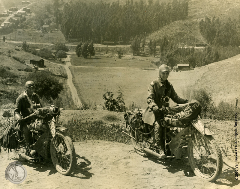 The Van Buren sisters’ cross-country trip was highly unusual for 1916. Motorcycle Illustrated reported on July 6, 1916, that the sisters expected “to show the brothers and fathers of other girls that ladies can ride and still not lose their most valuable asset, their femininity.” A writer at the Denver Post argued that the Preparedness issue was “serving as an excellent excuse for women to stay away from home, to display physical prowess in various fields of masculine superiority, and to display their feminine contours in nifty khaki and leather uniforms.” The sisters toured in a post-Victorian society where suffragette Susan B. Anthony and her followers championed the right to vote, the US Army had a strict policy against women’s requests to serve, and donning a pair of trousers could land a gal in jail.