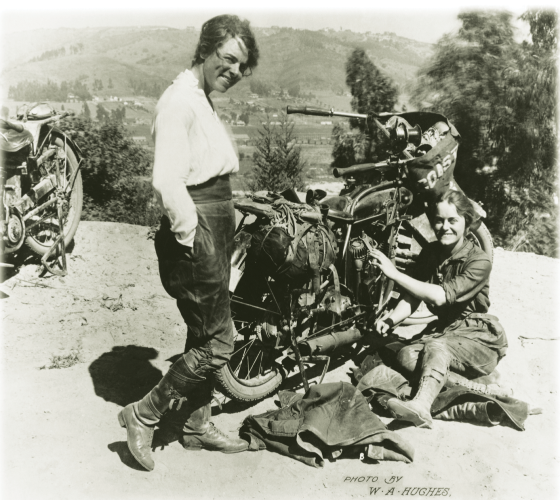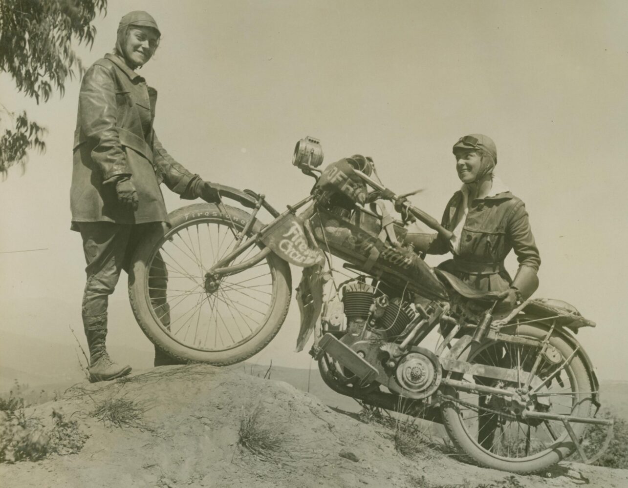 Astride a pair of Indian motorcycles and decked out in tan leather pants, caps, goggles, and long coats, Adeline, 26, and Augusta, 32, set off from Sheepshead Bay, New York, on July 4, 1916. They were about to undertake a historical 5,500-mile cross-country trek to Los Angeles, which aimed to prove that women could support military efforts and serve as dispatch riders. The sisters were keen advocates of the national Preparedness Movement, which sought to strengthen the military in anticipation of the Americans’ entry into World War I.