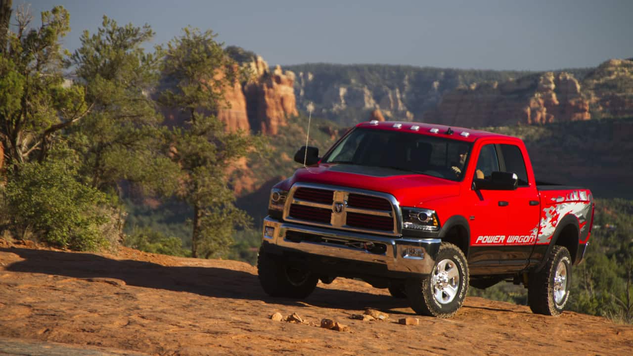 This weekend in Sedona, Arizona we joined the Ram engineers for a romp through the Arizona backcountry in a 2014 Power Wagon. Though we’ll be back with a full-blown review with loads of technical stats in the future, the most notable enhancements were Ram Articulink front suspension, sway bar disconnect, and 5-link coil rear suspension. The trails we traversed with a mix of mountain two tracks, where low-range made for a more comfortable ride but was not required, to steep, loose, locker-required cambered ledges. We also had a chance to play on the red slick rock of the Broken Arrow Trail.