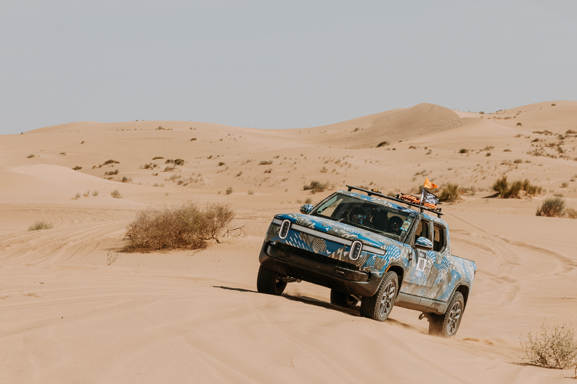 Despite the added challenges, Donaghe says she wouldn’t have traded the experience for the world. “I loved it. I loved every minute of being in that vehicle.” With 826 pound-feet of torque, 754 horsepower, air suspension, and no flats after eight days on stock Pirelli Scorpion tires, Hall says the R1T was a “total champ” in tough terrain. Indeed, this R1T might even be the first electric truck to tackle the famed Oldsmobile Hill, an exhilarating 275-foot climb in the Imperial Sand Dunes.