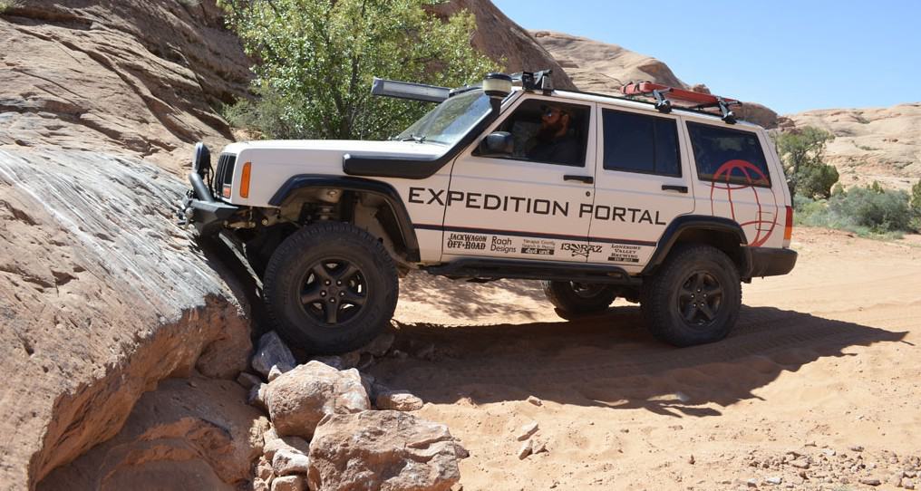 Getting rolling the following day it didn’t take very long to hit the real start of the trail I had been told about. The previous day was fairly difficult by most standards, but was just the warm up to what we were about to see. The start of the climb up Grey Mesa includes a four foot tall near vertical ledge. This is a good reminder whatever you go down, you need go up. The trail has a number of off-camber large stairs, near vertical inclines, and one particular off camber section that slopes right toward a hundred foot drop. The driver in the Grand Cherokee had a few choice words as the massive travel and soft springs tipped right toward the edge. Easing off of the ledge and onto a somewhat level ground was a great feeling and allowed view that was easy to take in.