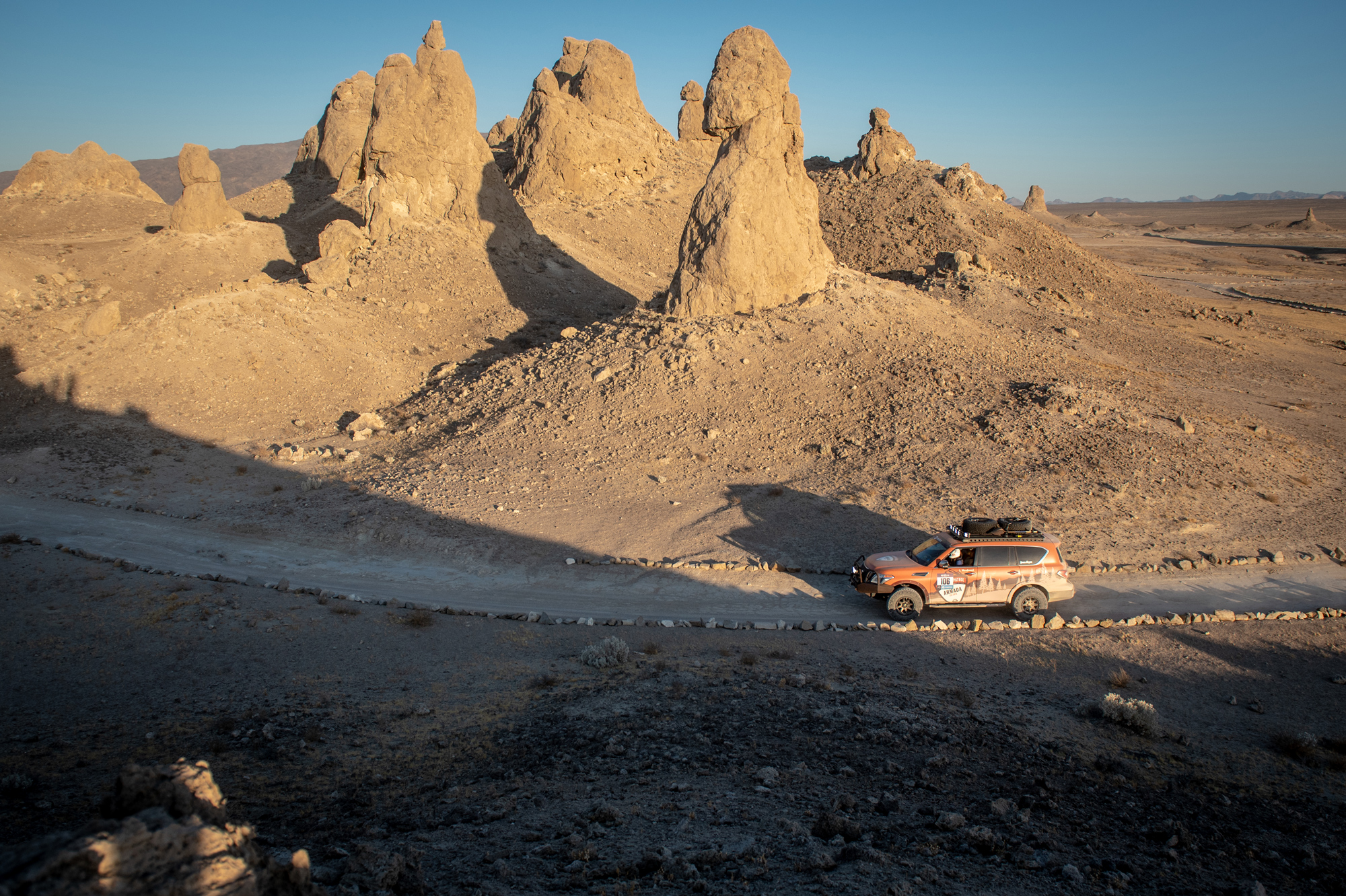 And we managed to outrun the curse for a while. Leading up to the final CP, we had enjoyed a near-perfect day. We’d bumped and bounced over 90 miles of dusty roads to Ridgecrest, California, nestled between the southernmost points of Death Valley and Sequoia National Forest, then navigated past the otherworldly Trona Pinnacles, eerie spires of sandstone you might expect Spock to poke his head around. We had hit 92 percent of our CPs. At the Rebelle, that is the definition of killing it.