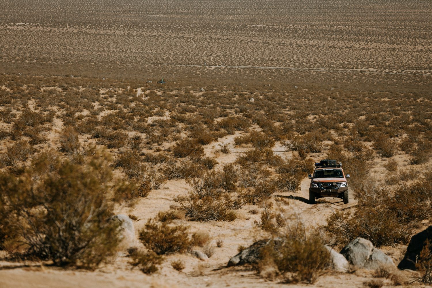 Now we were running in seventh place, and mounting pressure oozed through the panel gaps in the Armada. Sedona outstretched her hands over the map, splaying her fingers in front of her with a sharp, downward gesture—her sign language for “Back off, Lyn.” The clock ticked off seconds faster than seemed natural, as if 100 could fit into a minute. We had to get going to Cougar Buttes, our next base camp. We could see it clearly from our current vantage point; the massive white event tent nestled in a rocky outcropping that popped up in the middle of California’s Johnson Valley state off-highway vehicle park.