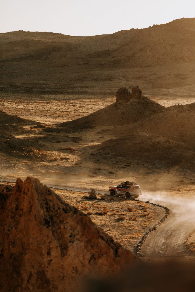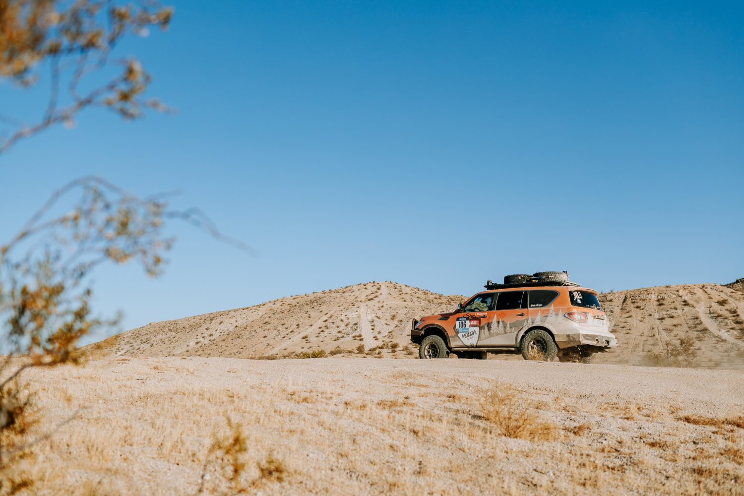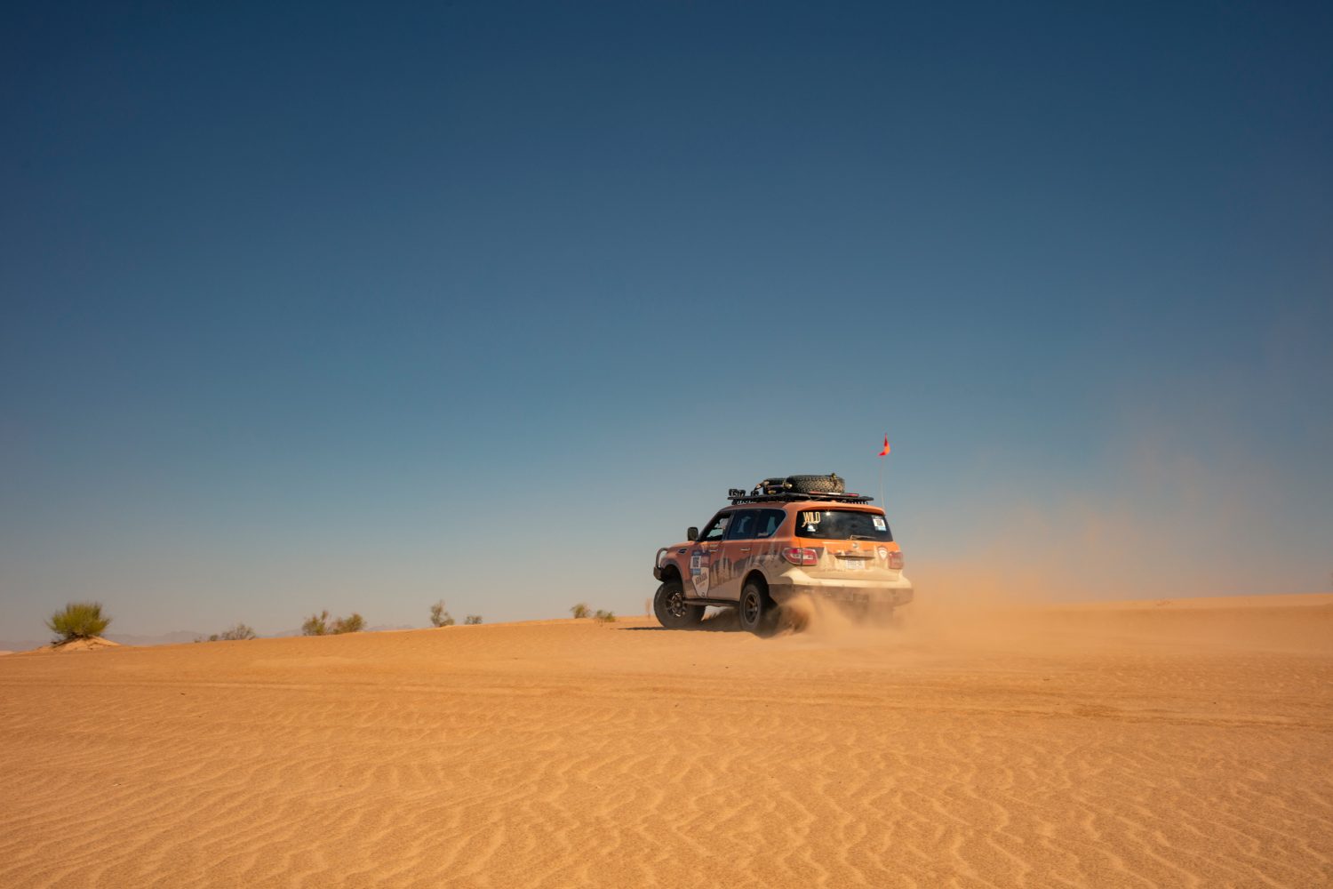 Parked on the edge of a sand cliff, staring into miles of jutting beige peaks, we pinged at CP 16. The moment had come to either go all-in or cut. “If you don’t feel comfortable, I know I can get us out,” Sedona said emphatically. That was all I needed. Like everything else this week, we’d jump together. I pointed the Armada’s wheels downward, and we flowed over the steep dune like a waterfall straight into our fear.