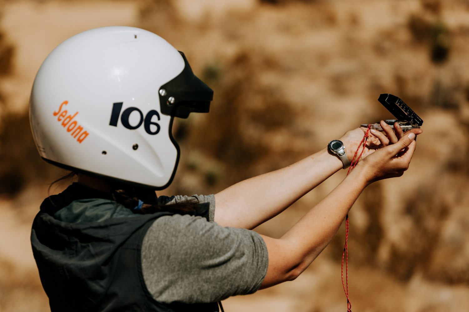 Every day during the Rebelle, you go out and hunt for CPs, which are assigned point values and designated like ski runs. Greens are mandatory, and the easiest to find, marked on the terrain by fluttering flags put out by the organizers. Optional blue and black CPs are tougher; the blacks aren’t even marked, they are just a spot out in the middle of nowhere that could be a patch of creosote or a basking lizard or just another pile of endless sand. We carry rally-issued satellite trackers and ping them at all CPs. The signal hurtles into space, then bounces back to the Rebelle’s sophisticated scoring software.