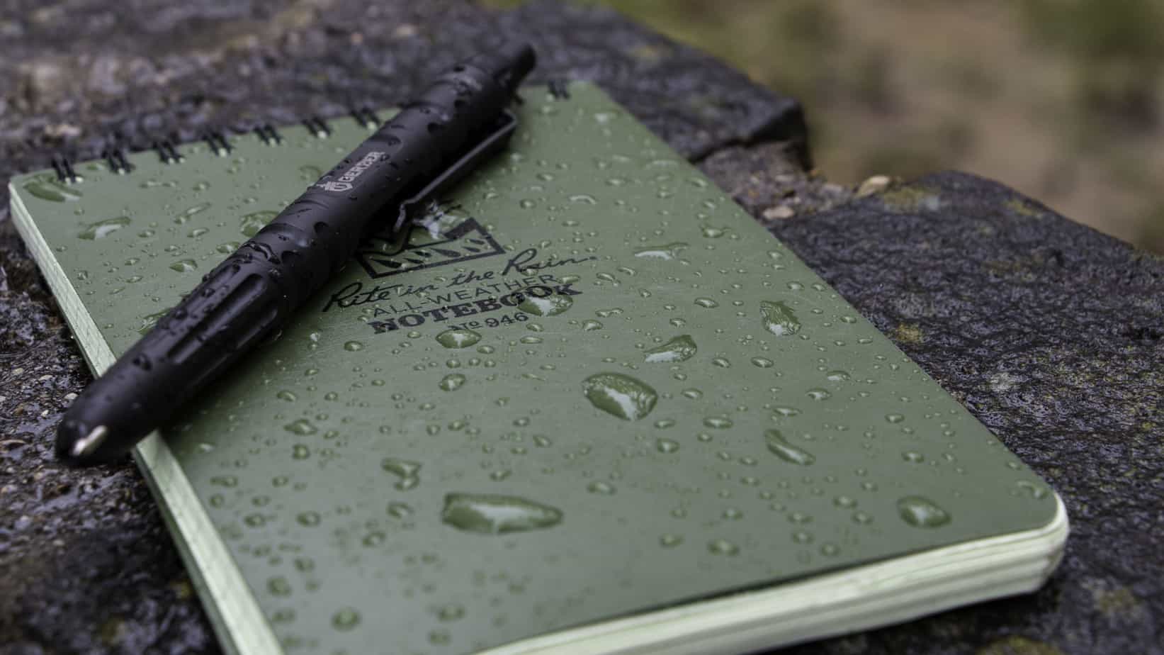 Paper backups and writing utensils can range from the cheap to the extravagant, but we decided to look in the middle of the road at Rite in the Rain’s weather proof notebooks. They have been very popular in recent years and we were curious to see if they were really as great as people claimed. For proper testing we selected a Rite in the Rain approved pen to go along with them, the Gerber Impromptu.