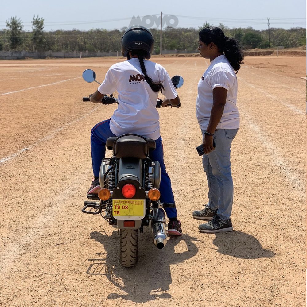 The state of Telangana has invested in residential colleges for young girls from rural and tribal backgrounds, so we’ve partnered with these colleges in Hyderabad to provide free two-wheeler-driving training sessions for girls and young women as a first step of basic commute. In one college, we are training 150 girls, many with the dream to ride a Royal Enfield.