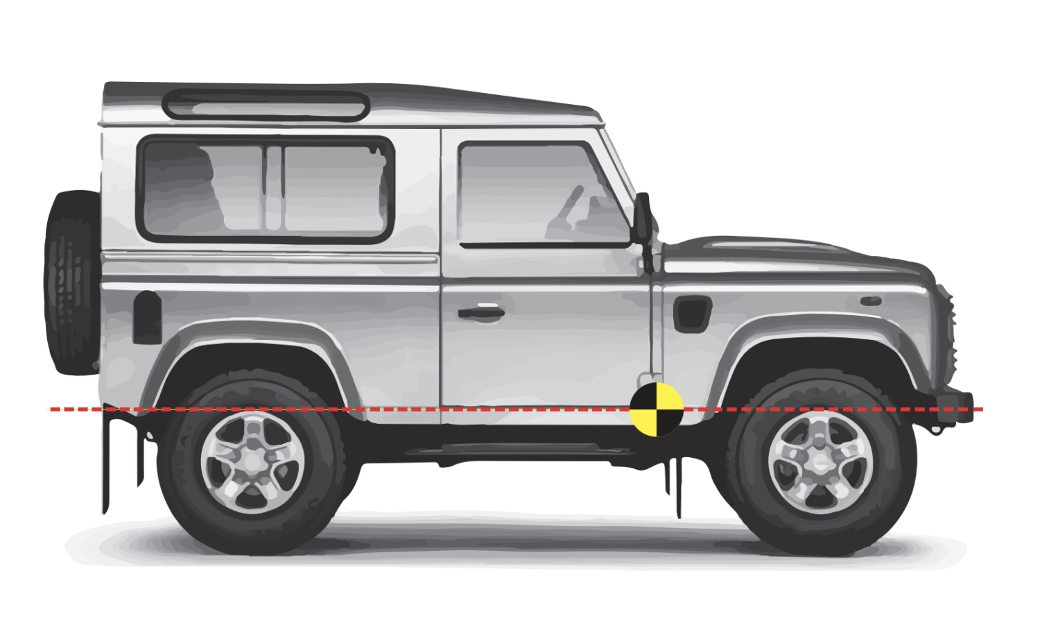 Let’s dig into a practical application of using this knowledge to see where one of my personal vehicles stacks up. I have a Land Rover Defender 90 with a small 2-inch suspension lift. I’ve verified my fluids are topped up and have a full tank of fuel prior to testing. If you choose to do this at home, you’ll need vehicle scales and a lift or jacks of some sort. The intention is to make weight calculations to provide data on how easily my vehicle will roll over.