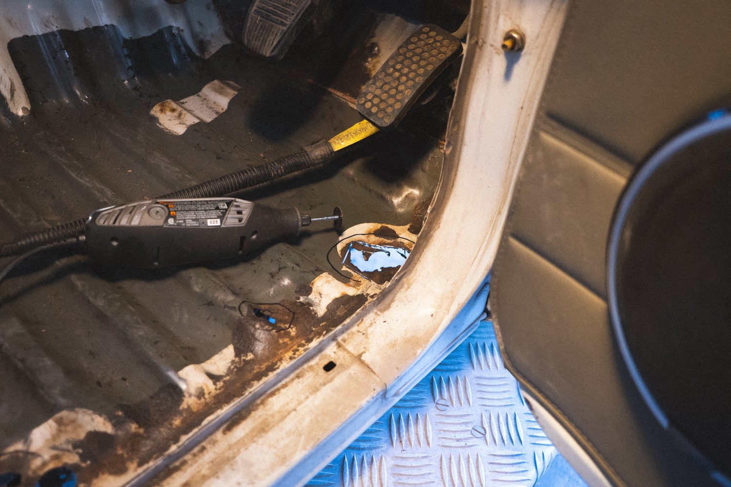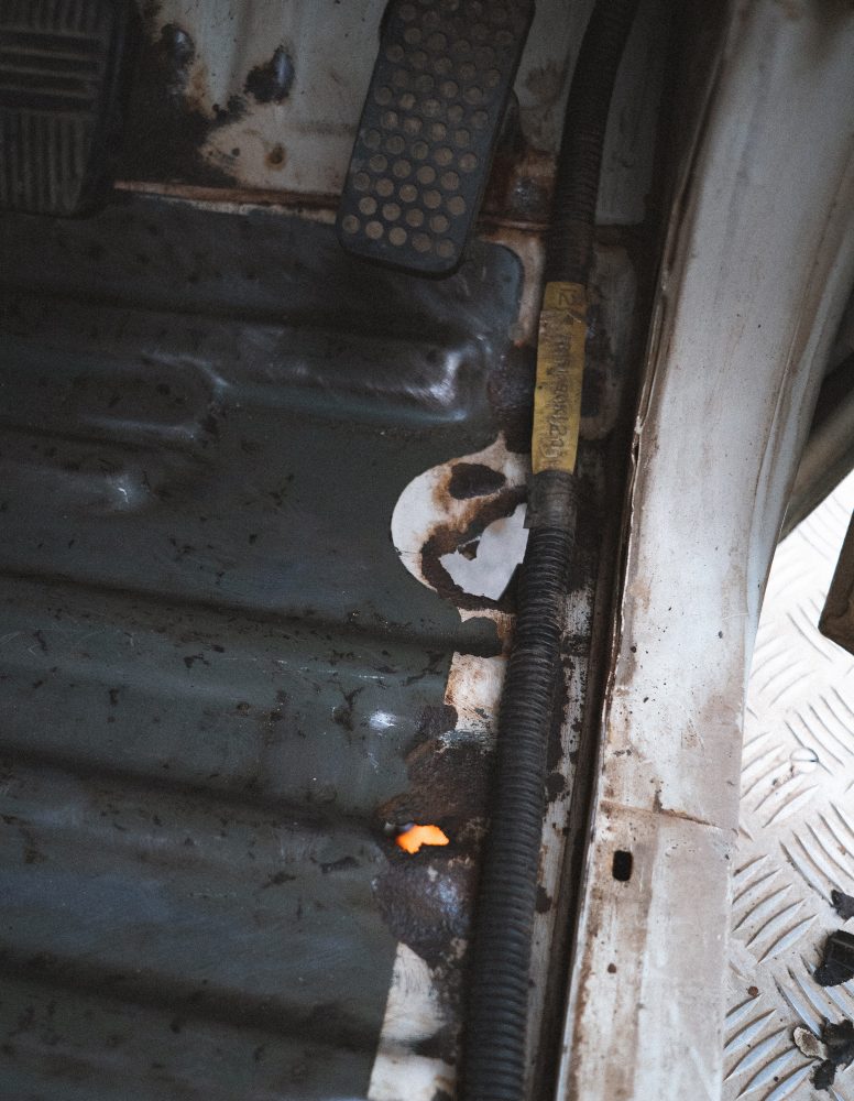Despite all the rust, the floor pan cleaned up fairly well, and I knew this portion of the build would move along nicely. By this point, I had realized the rust automotive repair wasn’t a job I would be outsourcing. I would have to learn to weld and do it myself. Every shop I talked to in town either refused to take on the job or was asking an astronomical price. Thankfully, I had easy access to a shop and welder just a few miles down the road at my family’s farm.