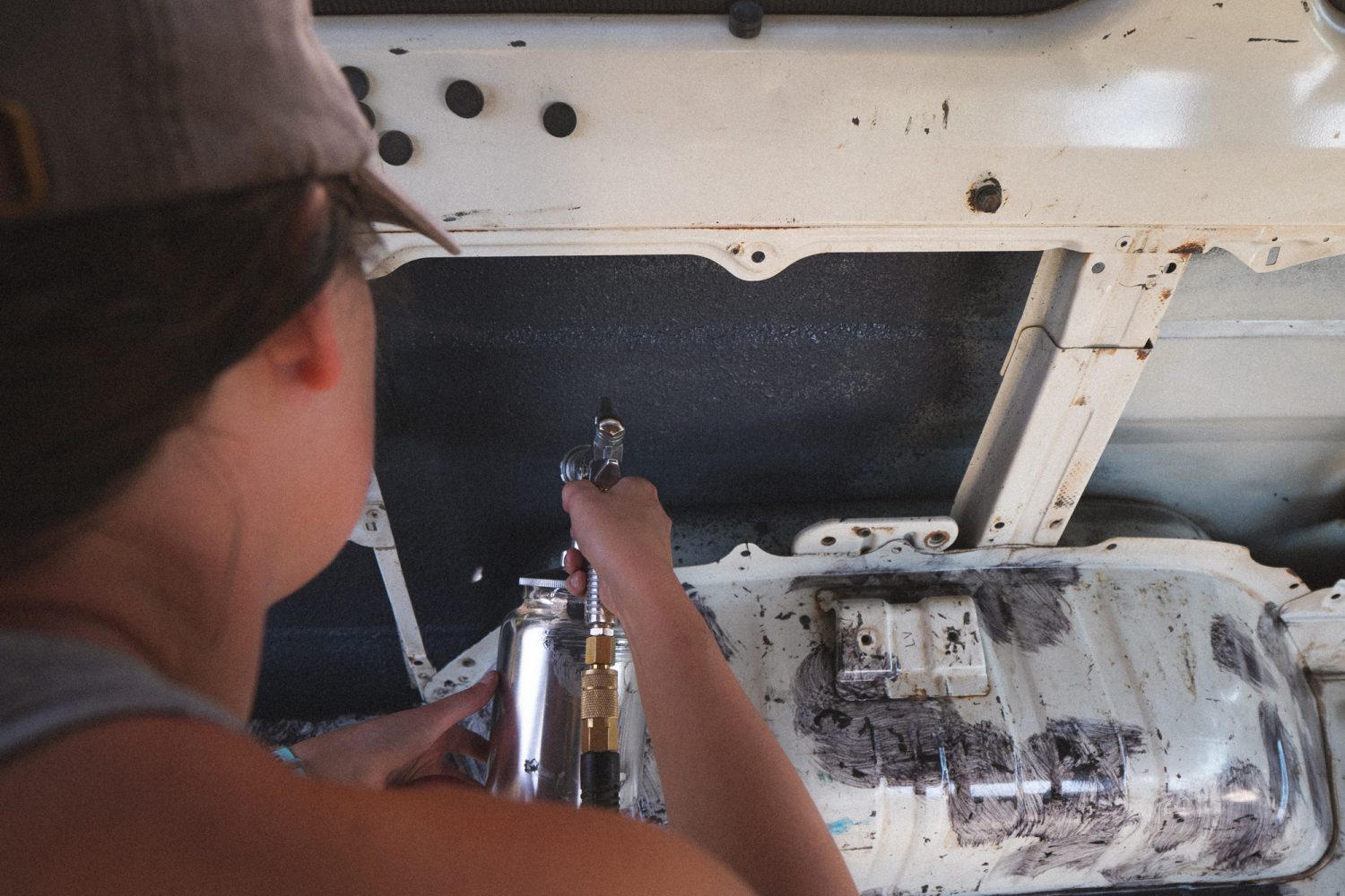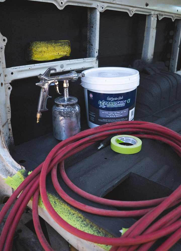 Early in the spring of this year, Olivia and I met up with Tim and Kelsey of @dirtsunrise. While drinking a few beers, they told us about their Pan American overland travels and full-time life on the road. As we toured each other around our vehicles, I mentioned our predicament with noise levels and the lack of potential solutions. At this, Tim took us over to their pop-top, 80-Series Land Cruiser and introduced us to the product covering their floor pan. They had sprayed on Lizard Skin insulation prior to heading south. After a few questions, this insulation seemed like a solid solution to our problem.