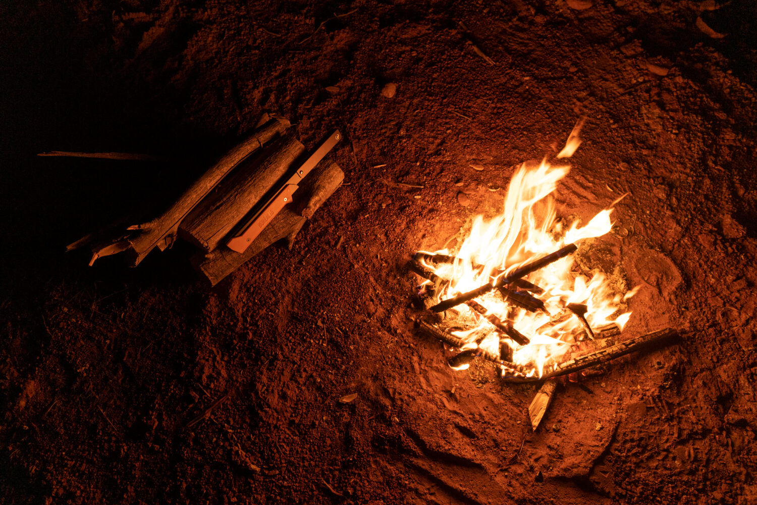 Above: Darkness descends on camp, but our fire keeps things warm.