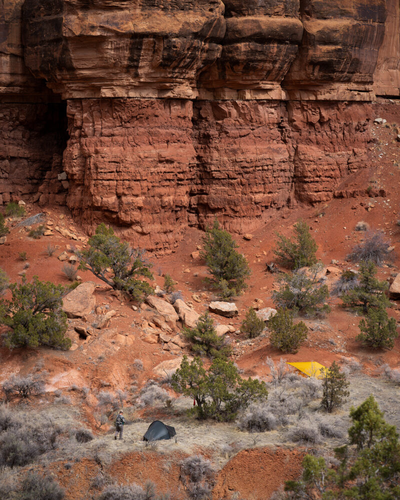 Above: Our “low” camp in the canyon, perched on a bench above the floodplain of the river.