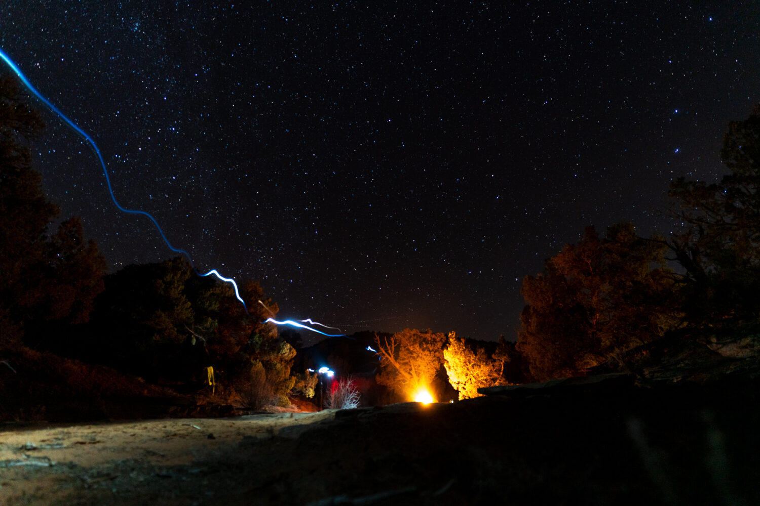 Below: A starry evening and headlamp trails. The next day, we dropped into the canyon.