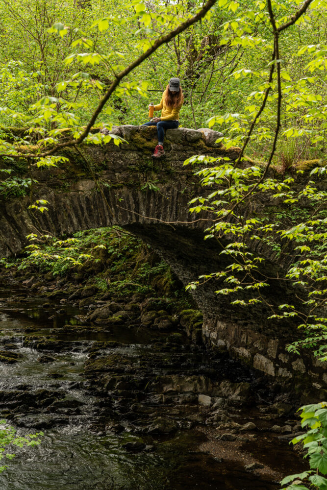 Still, while the blighters were sublimely absent, there was something about walking through this ancient woodland—home to giant knotted oak trees and a grove of soaring Douglas firs—which made my neck crane and strain with aching delight. Throw in a dramatic rocky gorge carved out by the gushing Abhainn Teithil, over which a series of lofty bridges allowed us to soak in the roaring sounds of the water, and we’d got ourselves one lovely swathe of afternoon.
