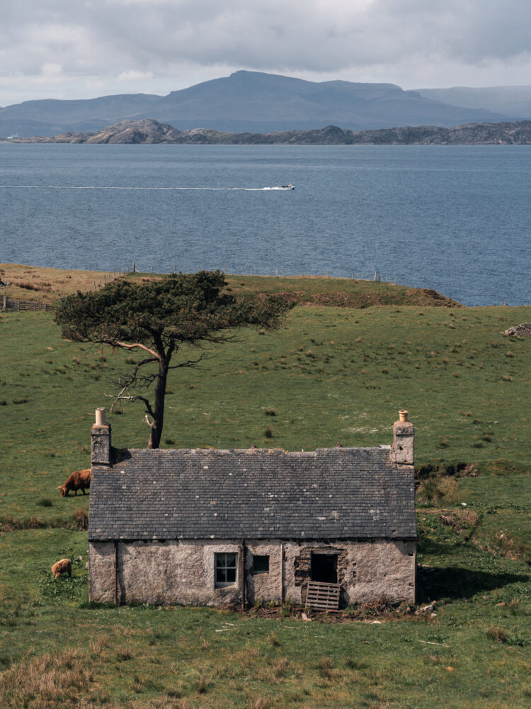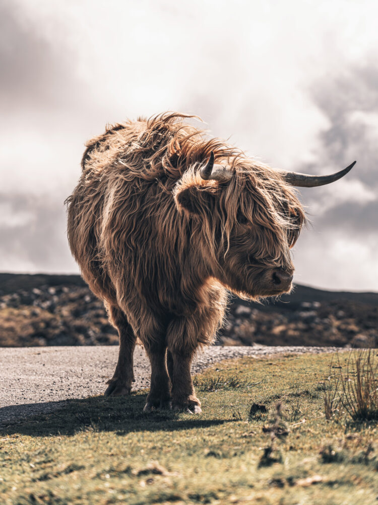 This area draws us back time and again because the place seems to imbue a warm and welcoming atmosphere, friendly vibes from locals and visitors alike, including the huge, shaggy Highland coos (cows) whose auburn, thicker-than-polar-bear-fur hair was a force to be reckoned with. Upon arrival, there’s always a feeling of having conquered a passage to somewhere that feels a little inaccessible, and it gives a certain at the edge of the Earth allure. The day we rocked up was no exception—it blew a howling hooley (gusting wind). Fog and cobwebs blown, my mind was no longer full of either.