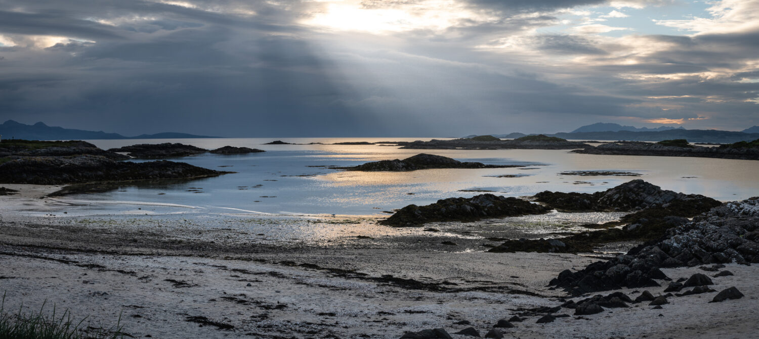 Out of the rather beguiling woodland, a long stretch of shingle and white sandy beach emerged. The beach teemed with oystercatchers, eider duck, and ringed plover alongside the usual suspects of gannet, gulls, and auks. It was my kind of crowded and quite the coastal bird show when the pipits and larks piped up to serenade us with their evocative calls. For me, it’s one of the most peaceful places in Scotland, overlooking the islands of Balnagowan, Shuna, and Lismore, and makes a serene setting for some morning meditation.