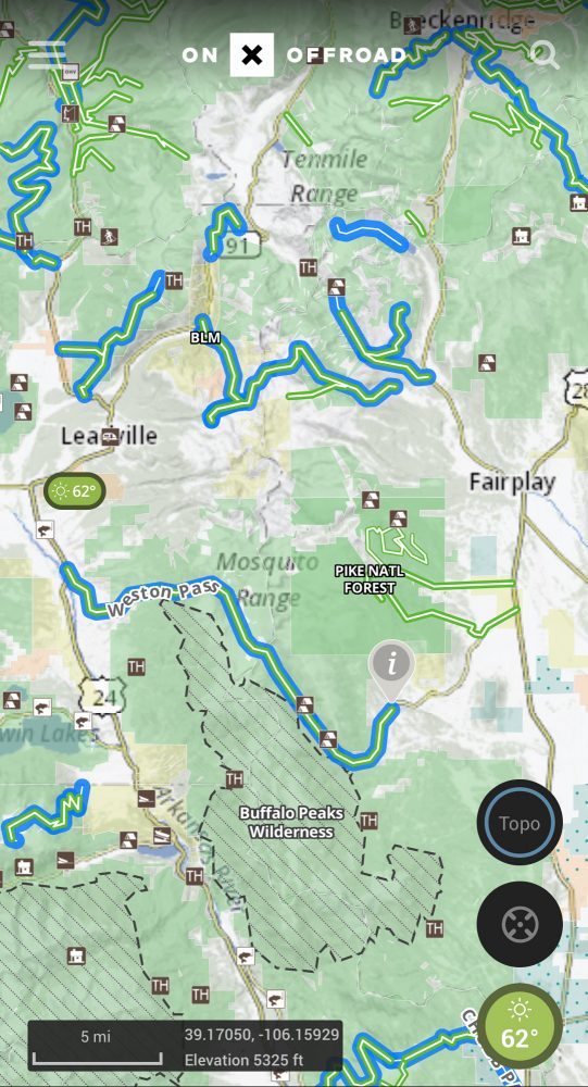Leadville provided a welcome break from driving, and after a quick visit to the Melanzana store, we continued South. Our route quickly departed the pavement, and we were once again on dirt roads, craning our necks at the fall colors—this time on our way toward the summit of Weston Pass. This high-mountain route connects Leadville to Fairplay, and it cut off a significant number of miles from our trip. While climbing upwards, Royal and I encountered many dispersed camping sites, most of which had great views of the surrounding valley. Some even had metal fire rings, but due to the current burn bans in Colorado, there would be no campfires.