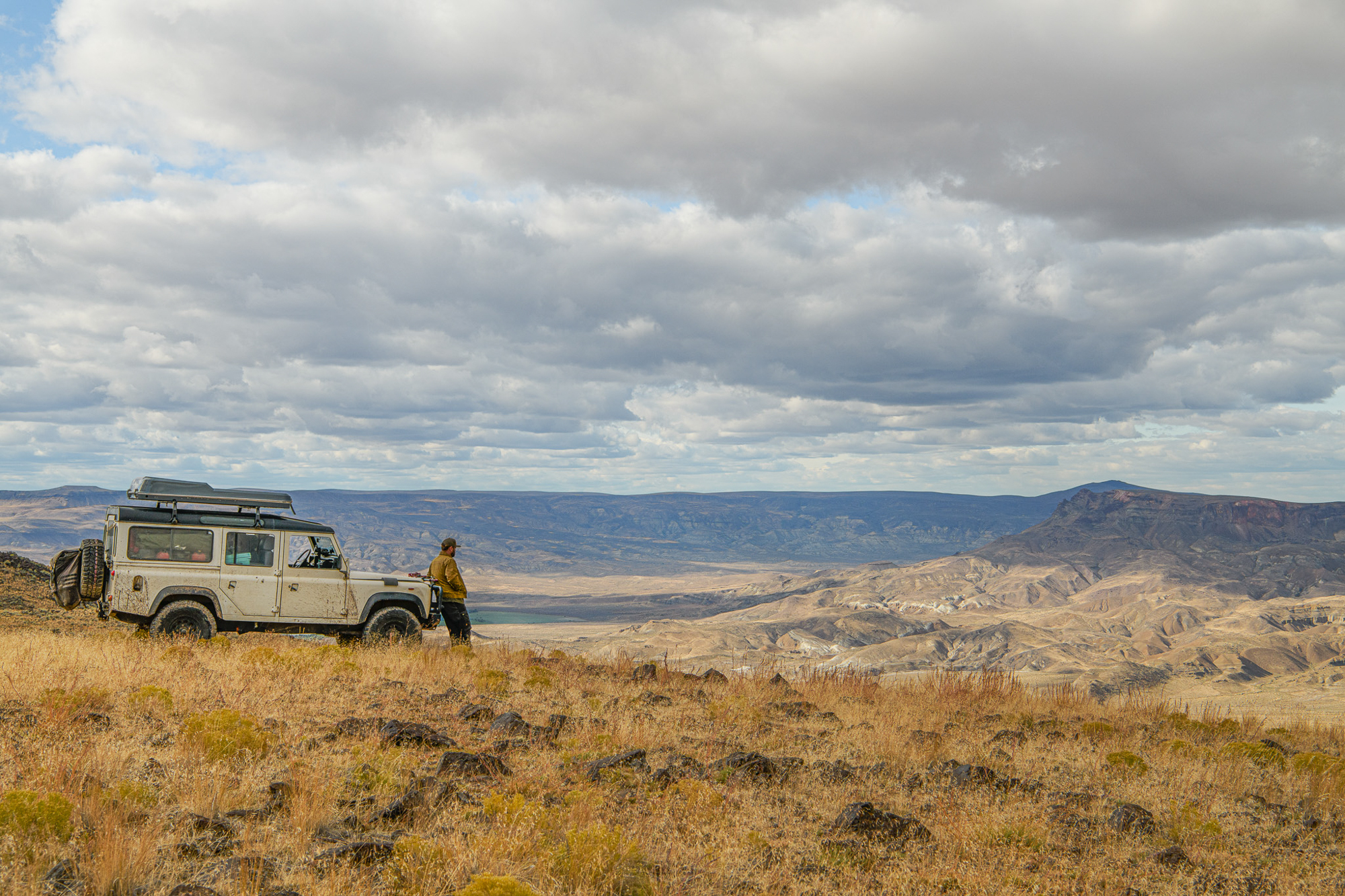 All of us drove through the southern edge of that big storm the next day, aiming for our rendezvous point some six hours east. We hit snow, wind, and rain with the occasional yet promising burst of sun along the way. I rode shotgun with Josh in his “rustic” Defender 110, with a portable Bluetooth sound system waging battle against the engine, transfer case, road noise, and conversation as we tried to keep up with Toby in his well-appointed diesel G-Wagon. We were headed for the far northern reaches of America’s Great Basin.