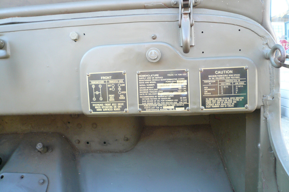 The 4-cylinder, Go Devil engine put its scrappy 60 hp to the tarmac via a 3-speed, T-84 transmission and a 2-speed transfer case (all manual, of course). According to the owner, drivers at the time reported that the little jeep ”went the like the devil” but that it also “took the devil to stop it.” Apparently the brakes weren’t as scrappy as the engine.